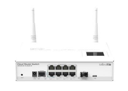 อุปกรณ์ Cloud Router Switch + Wireless ความเร็ว 300 Mbps ความถี่ 2.4GHz สำหรับสำนักงานขนาดเล็ก-กลาง กำลังส่งสูงมาก 1,000mW (30 dBm) มาพร้อมด้วย 8 กิกะบิทพอร์ท 10/100/1000 Mbps + 1 พอร์ท SFP + 1 พอร์ท microUSB + เสาอากาศ 2 x 4 dBi, มาพร้อมหน้าจอ LCD แสดงสถานะการทำงาน, รองรับการทำงานที่หลากหลาย สามารถรองรับการทำงาน Load Balancing, HotSpot Gateway และ VPN Server เหมาะสำหรับสำนักงานขนาดเล็ก (มาพร้อมด้วย MikroTik RouterOS, Level5) * CPU Atheros AR9344-DC3A-R 600MHz + 128MB DDR SDRAM