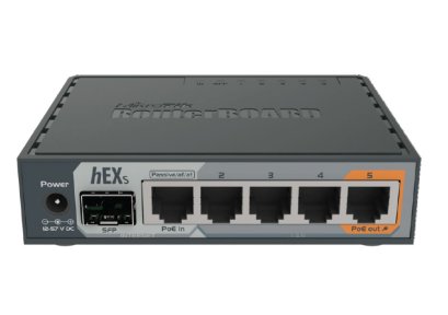 Mikrotik hEX S (RB760iGS) อุปกรณ์ Router CPU Dual-Core 880MHz, RAM 256MB มาพร้อม 5 Gigabit Ports (10/100/1000Mbps) กับ 1 SFP Port และ 1 USB2.0 Port รองรับการจ่ายไฟเข้า(PoE IN) มาตรฐาน IEEE 802.3af/at RouterOS Level 4